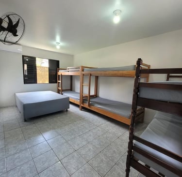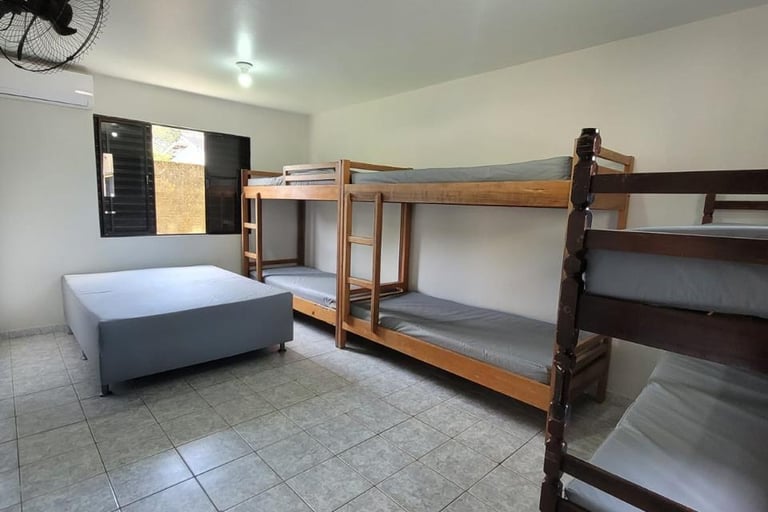 Quartos climatizados com banheiros individuais. (sem área de camping)